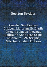 Подробная информация о книге «Cimelia: Seu Examen Criticum Librorum, Ex Diariis Literariis Lingua Pr?cipue Gallica Ab Anno 1665 Usque Ad Annum 1792 Scriptis, Selectum (Italian Edition) Egerton Brydges». Сайт не предоставляет возможности читать онлайн или скачать бесплатно книгу «Cimelia: Seu Examen Criticum Librorum, Ex Diariis Literariis Lingua Pr?cipue Gallica Ab Anno 1665 Usque Ad Annum 1792 Scriptis, Selectum (Italian Edition) Egerton Brydges».