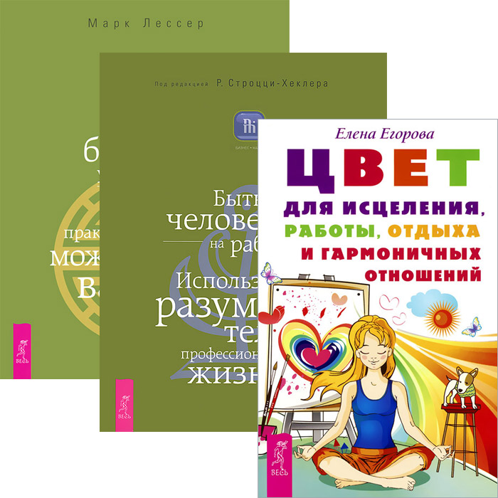 | Полное название книги | Марк Лессер, Елена Егорова Цвет для исцеления, работы, отдыха и гармоничных отношений. Быть человеком на работе. Используйте разум своего тела в профессиональной жизни. Дзен бизнес-управления. Как практика дзен может п |