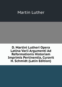 | Полное название книги | Martin Luther D. Martini Lutheri Opera Latina Varii Argumenti Ad Reformationis Historiam Imprimis Pertinentia, Curavit H. Schmidt (Latin Edition) |