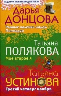 | Полное название книги | Татьяна Устинова, Дарья Донцова, Татьяна Полякова Дарья Донцова. Рваные валенки мадам Помпадур. Татьяна Полякова. Мое второе я. Татьяна Устинова. Третий четверг ноября |