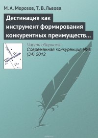 | Полное название книги | Львова Т. В., Морозов М. А. Дестинация как инструмент формирования конкурентных преимуществ туристского региона |