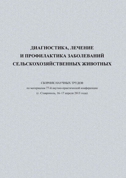 Подробная информация о книге «Диагностика, лечение и профилактика заболеваний сельскохозяйственных животных. Сборник научных трудов по материалам 77-й научно-практической конференции (г. Ставрополь, 16-17 апреля 2013 года) Сборник статей». Сайт не предоставляет возможности читать онлайн или скачать бесплатно книгу «Диагностика, лечение и профилактика заболеваний сельскохозяйственных животных. Сборник научных трудов по материалам 77-й научно-практической конференции (г. Ставрополь, 16-17 апреля 2013 года) Сборник статей».