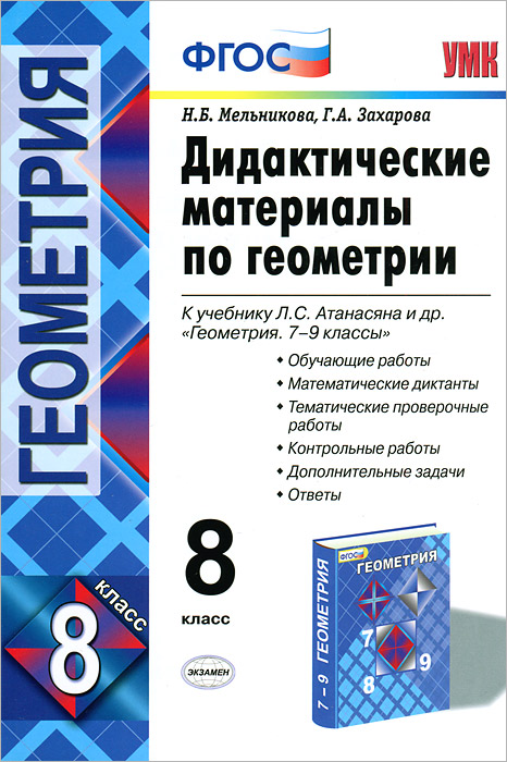 | Полное название книги | Н. Б. Мельникова, Г. А. Захарова Дидактичекие материалы по геометрии. 8 класс |