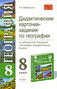 | Полное название книги | Р. Х. Хабибуллин Дидактические карточки-задания по географии 8 класс |