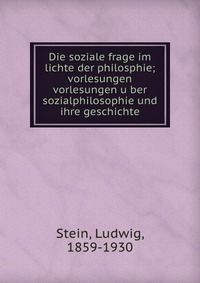 | Полное название книги | Ludwig Stein Die soziale frage im lichte der philosphie; vorlesungen vorlesungen u?ber sozialphilosophie und ihre geschichte |