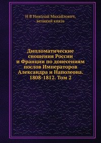 | Полное название книги | Н В Николай Михайлович, великий князь Дипломатические сношения России и Франции по донесениям послов Императоров Александра и Наполеона. 1808-1812. Том 2 |
