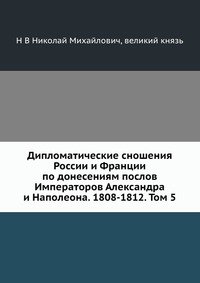 | Полное название книги | Н В Николай Михайлович, великий князь Дипломатические сношения России и Франции по донесениям послов Императоров Александра и Наполеона. 1808-1812. Том 5 |