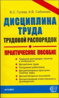 | Полное название книги | В. С. Гусева, К. В. Сибикеев Дисциплина труда Трудовой распорядок Практ.пос |