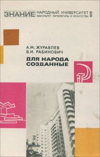Архитектура формирует ту реальную среду, в которой мы живем и которая активно воздействует на наше мировосприятие. За 60 лет в Советской стране создано немало гармоничных и высокохудожественных архитектурных произведений и ансамблей, отражающих дух нашей эпохи, ее социальные устремления, ее эстетические идеалы Книга познакомит читателя с лучшими из них. В ней кратко рассказывается о достоинствах этих произведений, дается анализ их социального и идейно-художественного содержания. Книга рассчитана как на слушателей народных университетов, так и на всех читателей, интересующихся актуальными проблемами и достижениями советского зодчества. Это и многое другое вы найдете в книге Для народа созданные (А. М. Журавлев, В. И. Рабинович)