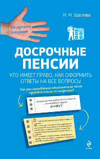 | Полное название книги | Н. М. Удалова Досрочные пенсии: кто имеет право, как оформить. Ответы на все вопросы |