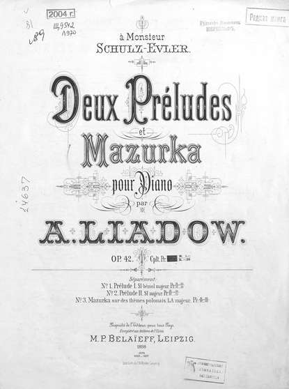 Подробная информация о книге «Две прелюдии и мазурка Анатолий Константинович Лядов, ». Сайт не предоставляет возможности читать онлайн или скачать бесплатно книгу «Две прелюдии и мазурка Анатолий Константинович Лядов, ».