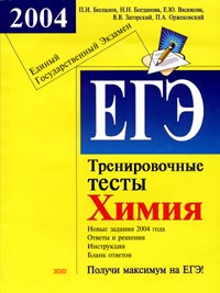 | Полное название книги | П. И. Беспалов, Е. Ю. Васюкова, Н. Н. Богданова, В. В. Загорский, П. А. Оржековский ЕГЭ 2004. Химия. Тренировочные тесты |
