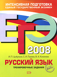 | Полное название книги | В. А. Коханова, С. И. Львова, И. П. Цыбулько ЕГЭ 2008. Русский язык. Тренировочные задания |
