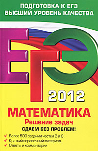 Книга окажет помощь учителям при организации систематической подготовки учащихся к сдаче ЕГЭ по математике. Это и многое другое вы найдете в книге ЕГЭ 2012. Математика. Решение задач. Сдаем без проблем! (А. Р. Рязановский, В. В. Мирошин)