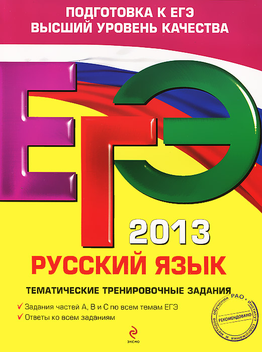 | Полное название книги | А. Ю. Бисеров ЕГЭ-2013. Русский язык. Тематические тренировочные задания |