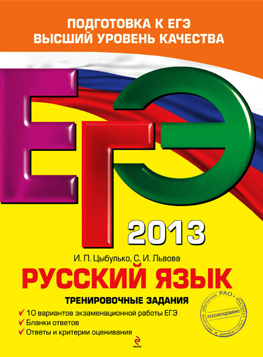 | Полное название книги | С. И. Львова, И. П. Цыбулько ЕГЭ 2013. Русский язык. Тренировочные задания |