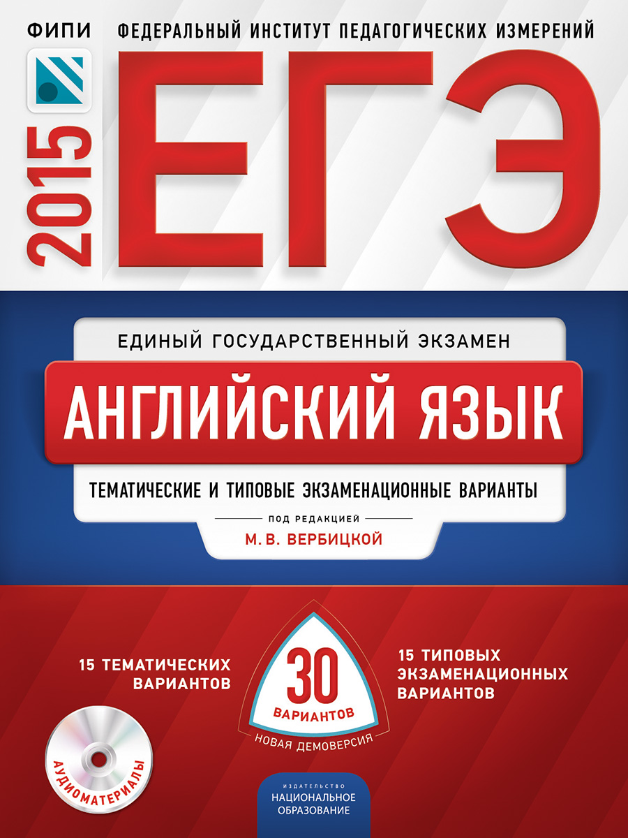 | Полное название книги | М. В. Вербицкая ЕГЭ-2015. Английский язык. Тематические и типовые экзаменационные варианты. 30 вариантов (+ CD) |