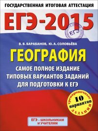 | Полное название книги | Ю. А. Соловьева, В. В. Барабанов ЕГЭ-2015. География. Самое полное издание типовых вариантов заданий для подготовки. 10 вариантов |