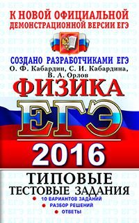 | Полное название книги | С. И. Кабардина, В. А. Орлов, О. Ф. Кабардин ЕГЭ 2016. Физика. Типовые тестовые задания |