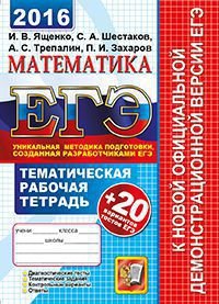 | Полное название книги | И. В. Ященко, П. И. Захаров, А. С. Трепалин, С. А. Шестаков ЕГЭ 2016. Математика. 20 вариантов тестов. Тематическая рабочая тетрадь |