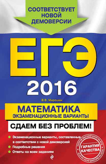 | Полное название книги | Владимир Васильевич Мирошин ЕГЭ 2016. Математика. Экзаменационные варианты. Сдаем без проблем! |