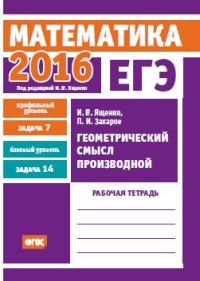 | Полное название книги | И. В. Ященко, П. И. Захаров ЕГЭ 2016. Математика. Геометрический смысл производной. Задача 7 (профильный уровень). Задача 14 (базовый уровень). Рабочая тетрадь |