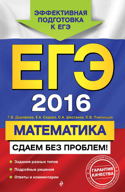 | Полное название книги | Георгий Владимирович Дорофеев, Сергей Валентинович Пчелинцев, Елена Александровна Седова, Сергей Алексеевич Шестаков ЕГЭ-2016. Математика. Сдаем без проблем! |