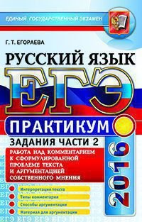 | Полное название книги | Г. Т. Егораева ЕГЭ 2016. Русский язык. Практикум. Работа над комментарием к сформулированной проблеме текста и аргументацией собственного мнения. Подготовка к выполнению части 2 |