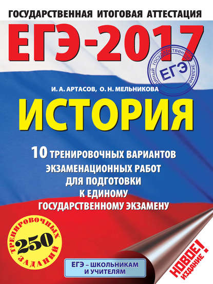 | Полное название книги | Игорь Анатольевич Артасов, Ольга Николаевна Мельникова ЕГЭ-2017. История. 10 тренировочных вариантов экзаменационных работ для подготовки к единому государственному экзамену |