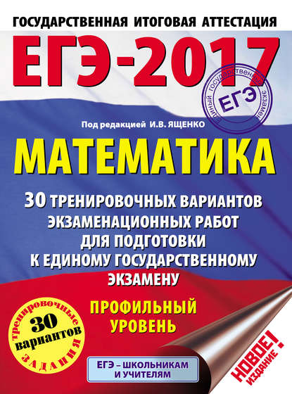 Подробная информация о книге «ЕГЭ-2017. Математика. 30 тренировочных вариантов экзаменационных работ для подготовки к единому государственному экзамену. Профильный уровень Иван Валериевич Ященко, Коллектив авторов». Сайт не предоставляет возможности читать онлайн или скачать бесплатно книгу «ЕГЭ-2017. Математика. 30 тренировочных вариантов экзаменационных работ для подготовки к единому государственному экзамену. Профильный уровень Иван Валериевич Ященко, Коллектив авторов».