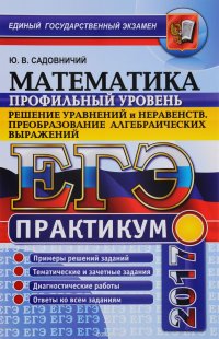 | Полное название книги | Ю. В. Садовничий ЕГЭ 2017. Математика. Практикум. Профильный уровень. Решение уравнений и неравенств. Преобразование алгебраических выражений |