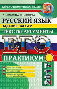 | Полное название книги | Т. Н. Назарова, Е. Н. Скрипка ЕГЭ 2017. Русский язык. Практикум. Подготовка к выполнению части 2. Тексты-аргументы |