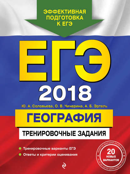 | Полное название книги | Юлия Алексеевна Соловьева, Ольга Владимировна Чичерина, Анна Борисовна Эртель ЕГЭ-2018. География. Тренировочные задания |