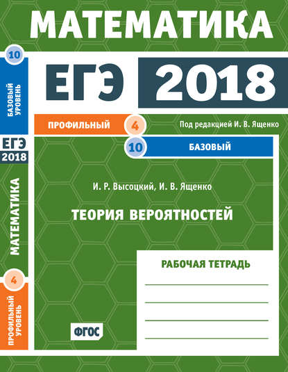 | Полное название книги | Иван Валериевич Ященко, Иван Ростиславович Высоцкий ЕГЭ 2018. Математика. Теория вероятностей. Задача 4 (профильный уровень). Задача 10 (базовый уровень). Рабочая тетрадь |