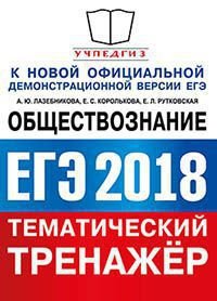 | Полное название книги | А. Ю. Лазебникова, Е. Л. Рутковская, Е. С. Королькова ЕГЭ 2018. Обществознание. Тематический тренажер |