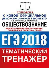 | Полное название книги | Е. Л. Рутковская, Е. С. Королькова ЕГЭ 2018. Обществознание. Тематический тренажер. Человек и общество. Экономика. Социология. Политика. Право |