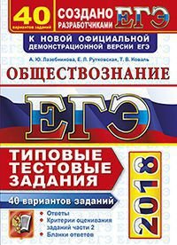 | Полное название книги | А. Ю. Лазебникова, Е. Л. Рутковская, Т. В. Коваль ЕГЭ 2018. Обществознание. Типовые тестовые задания. 40 вариантов заданий |