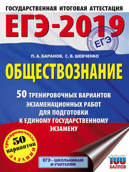 | Полное название книги | Сергей Владимирович Шевченко, Петр Анатольевич Баранов ЕГЭ-2019. Обществознание. 50 тренировочных вариантов экзаменационных работ для подготовки к единому государственному экзамену |