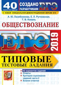 | Полное название книги | Т.В. Коваль, Е.Л. Рутковская, А.Ю. Лазебникова ЕГЭ 2019. Обществознание. Типовые тестовые задания. 40 вариантов заданий |