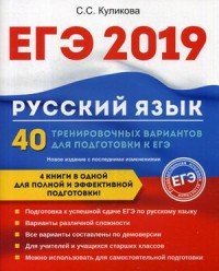 | Полное название книги | С. С. Куликова ЕГЭ 2019. Русский язык. 40 тренировочных вариантов для подготовки к ЕГЭ |