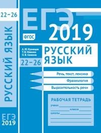 | Полное название книги | О. В. Сененко, Т. В. Межина, А. Ю. Кузнецов ЕГЭ 2019. Русский язык. Речь, текст, лексика и фразеология, выразительность речи (задания 22-26). Рабочая тетрадь |