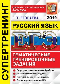 | Полное название книги | Г. Т. Егораева ЕГЭ 2019. Русский язык. Тематические тренировочные задания. Супертренинг |