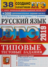 | Полное название книги | Ю. Н. Гостева, Г. Т. Егораева, И. П. Васильевых ЕГЭ 2019. Русский язык. Типовые тестовые задания. 38 вариантов + 300 дополнительных заданий части 2 |