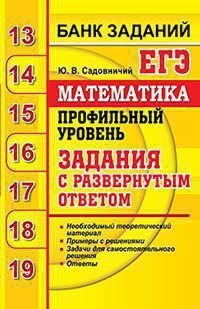 | Полное название книги | Ю. В. Садовничий ЕГЭ 2020. Банк заданий. Математика. Профильный уровень. Задания с развернутым ответом |