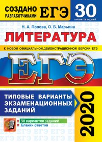 | Полное название книги | Н. А. Попова, Марьина О.Б. ЕГЭ 2020. Литература. Типовые тестовые задания. 30 вариантов заданий |