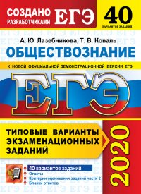 | Полное название книги | А. Ю. Лазебникова, Т. В. Коваль ЕГЭ 2020. Обществознание. Типовые варианты экзаменационных заданий. 40 вариантов |