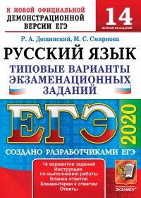| Полное название книги | Р. А. Дощинский, М. С. Смирнова ЕГЭ 2020. Русский язык. 14 вариантов. Типовые варианты экзаменационных заданий |