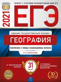 | Полное название книги | Вадим Владимирович Барабанов, Элеонора Мкртычевна Амбарцумова ЕГЭ 2021 География. Тематические и типовые экзаменационные варианты. 31 вариант |