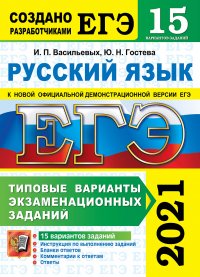 | Полное название книги | Ю. Н. Гостева, И. П. Васильевых ЕГЭ 2021. Русский язык. 15 вариантов. Типовые варианты экзаменационных заданий |