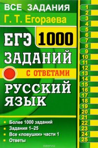 | Полное название книги | Г. Т. Егораева ЕГЭ. Банк заданий. Русский язык. 1000 заданий с ответами. Все задания части 1 |